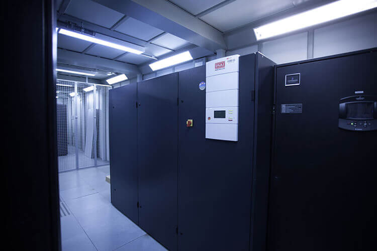 Die IT-Systeme im Datacenter werden durch redundante Klimasysteme zuverlässig gekühlt. Unter Einhaltung der ASHRAE-Standards für IT sorgen redundante Klimaschränke für eine konstante Temperatur zwischen 19 und 24 Grad sowie eine kontrollierte Luftfeuchtigkeit.